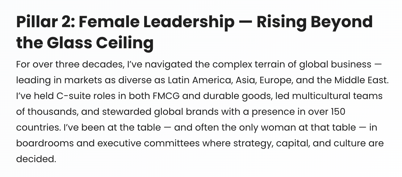 Having been at C-level responsibilities over the past 15 years of her 30+ year corporate career, she brings deep global experience in brand, marketing, and business management. She has led teams and managed brands in diverse markets including Latin America, the United States, South and Southeast Asia, Europe, China, and Africa, with expertise in both the Fast-Moving Consumer Goods (FMCG) and Consumer Durables sectors.